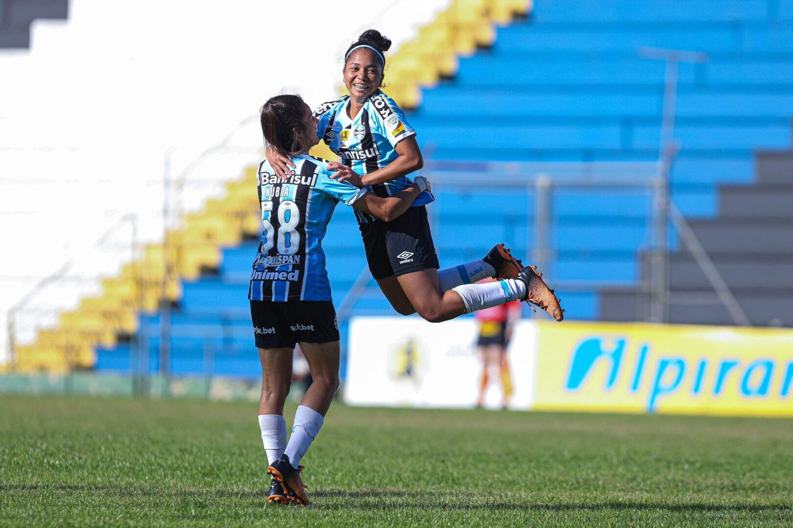 Aos 31’, o Grêmio teve um pênalti a seu favor, quando Emmily foi derruba na área. Raíssa Bahia bateu, mas a arqueira defendeu. Após o lance, o Tricolor seguiu tentando ampliar o placar, mas a defesa adversária conseguia afastar. O ponteiro chegava aos 40’, quando as Gurias Gremistas colocaram mais uma bola na trave. Dessa vez, Lari Sanchez chegou chutando forte e quase ampliou.