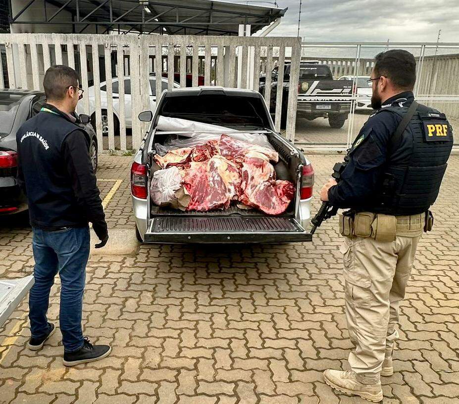 Ao abrirem a caçamba da caminhonete, os PRFs encontraram cerca de 350 quilos de carne de gado sendo transportada sem refrigeração. Ele disse que iria vender a carne, mas não comprovou sua origem.