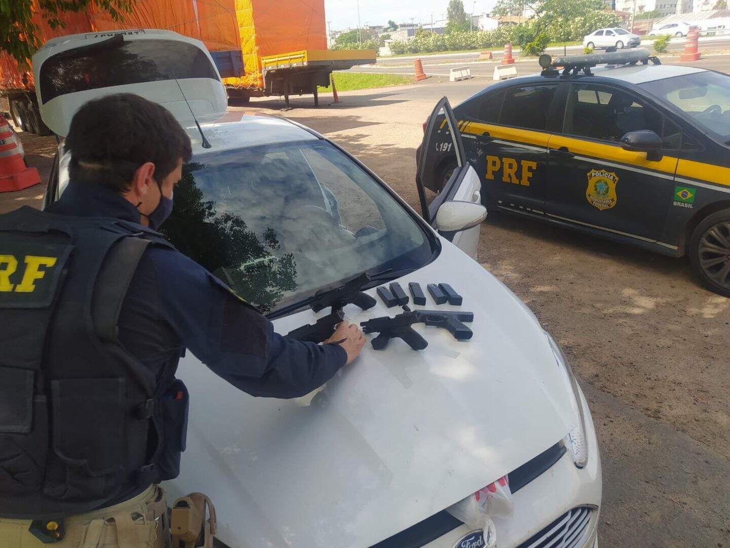 Na tarde deste domingo (7), a Polícia Rodoviária Federal (PRF) prendeu um homem trazendo do Paraguai quatro pistolas em um veículo abordado na BR-116. A ação contou com a participação do serviço de inteligência da PRF.