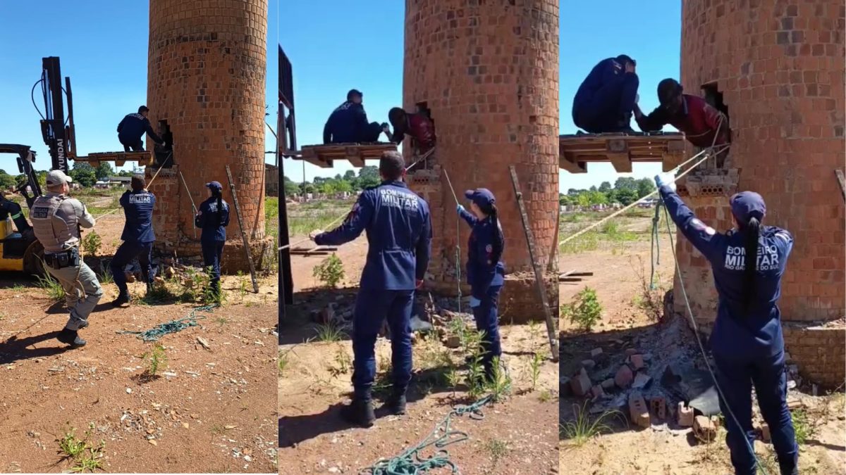 Um homem em situação de rua foi resgatado, nesta segunda-feira (5), após cair em uma chaminé de uma olaria desativada, em Vacaria, no Rio Grande do Sul. Conforme o CBMRS (Corpo de Bombeiros Militar do Rio Grande do Sul), a vítima teria passado dois dias no local.
