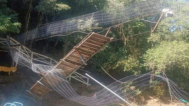 O acidente ocorreu depois que um cabo se rompeu, provocando o desabamento da estrutura. Os feridos – duas jovens de 19 e 21 anos e dois jovens de 23 e 27 anos – receberam atendimento médico e passam bem.