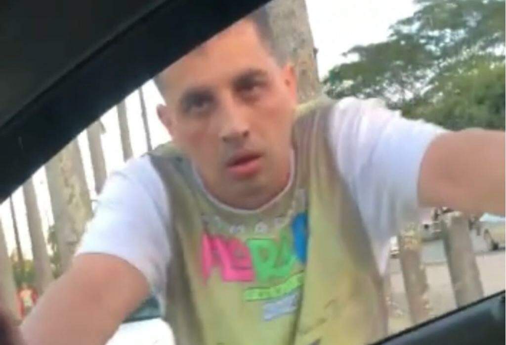 Nas imagens, o homem tenta abrir a porta do passageiro. Como não consegue, ele dá vários chutes no espelho retrovisor, tenta arrancar com as mãos, e segue tentando invadir o carro e dando chutes, até que desiste e vai embora.