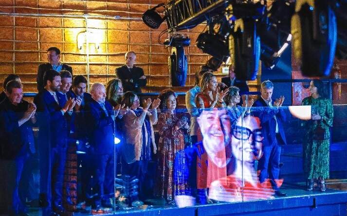 Apenas Janja, entre os membros do governo, discursou no palco. Lula acompanhou a homenagem em silêncio, de cima do camarote e acompanhado de ministros como Fernando Haddad e Anielle Franco. Juscelino Filho (União Brasil), ministro das Comunicações, representante da coalizão pela governabilidade no Congresso, surpreendeu ao fundo.