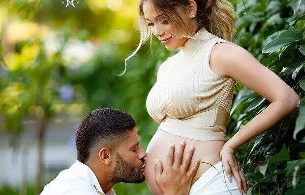 Hulk Paraíba e a mulher, Camila Angelo, estão contando os minutos para a chegada de sua primeira filha juntos, Zaya. O casal posou coladinhos em Miami neste sábado (16) com direito a Camila exibindo o barrigão. “Falta pouco!”, vibrou o jogador.