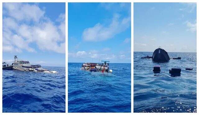 A proa do iate já estava parcialmente submersa, com algumas cabines inundadas, quando as equipe de resgate chegaram no local do acidente.