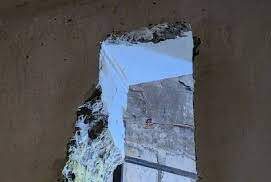 Imagem do presídio federal de segurança máxima de Mossoró (RN) mostra um buraco na parede da cela de um dos dois presos que fugiram da unidade na madrugada da quarta-feira (14).