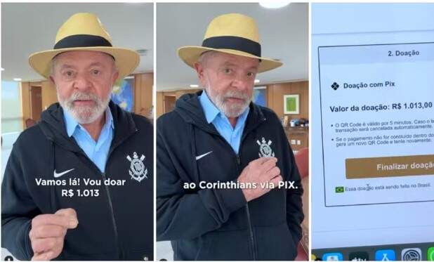 No final da tarde, o próprio presidente Lula compartilhou um vídeo nas redes em que diz que irá fazer uma doação para o Corinthians por Pix em resposta às “mentiras em todas as redes sociais”.