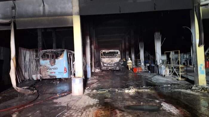 De acordo com o Corpo de Bombeiros, as chamas começaram por volta das 21h e destruíram quatro ônibus e dois veículos leves. Quatro caminhões foram mobilizados para conter o fogo. Não há registro de feridos.