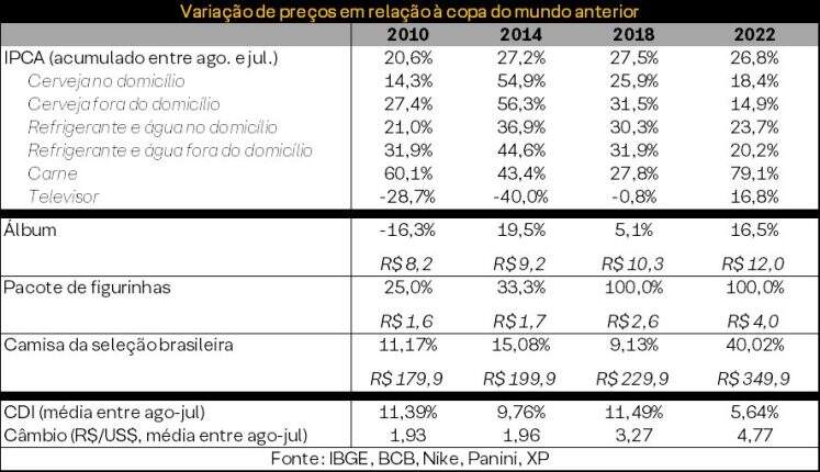 Itens como cerveja, carnes e televisores, que têm alta da demanda por causa da Copa, registram inflação de dois dígitos desde 2018, segundo um levantamento divulgado pela XP Investimentos.
