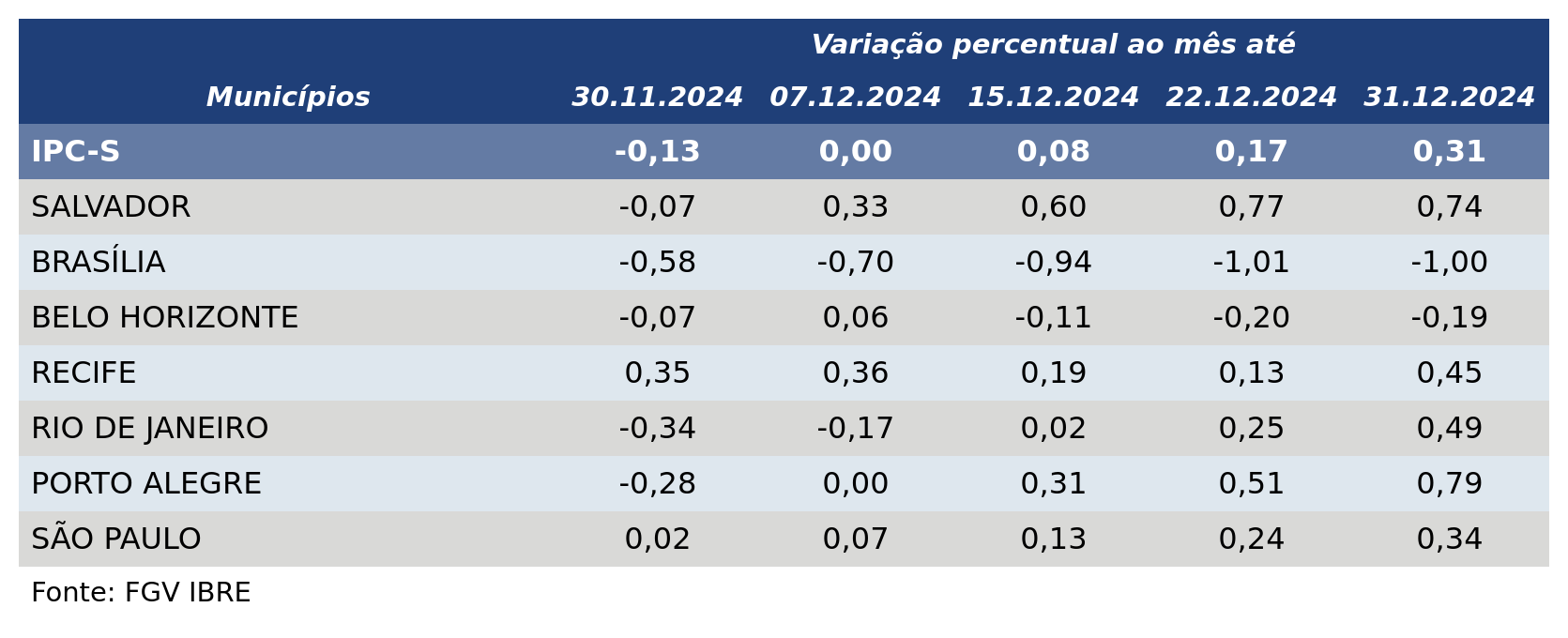 Além de Porto Alegre, o IPC-S subiu em outras cinco das sete capitais pesquisadas pela FGV na quarta semana de dezembro.