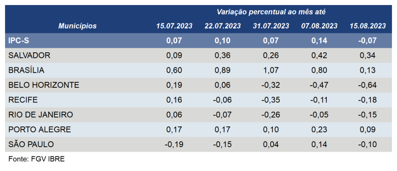 O IPC-S (Índice de Preços ao Consumidor – Semanal) recuou de 0,23% para 0,09% em Porto Alegre na segunda semana deste mês, de acordo com dados divulgados nesta quinta-feira (17) pela FGV (Fundação Getulio Vargas).