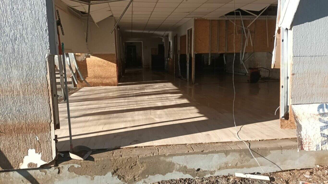 As partes elétrica, hidráulica e de climatização estão finalizadas. A próxima etapa será de ajustes em ambientes como refeitório, academia e vestiários. O mobiliário está em fase de instalação.