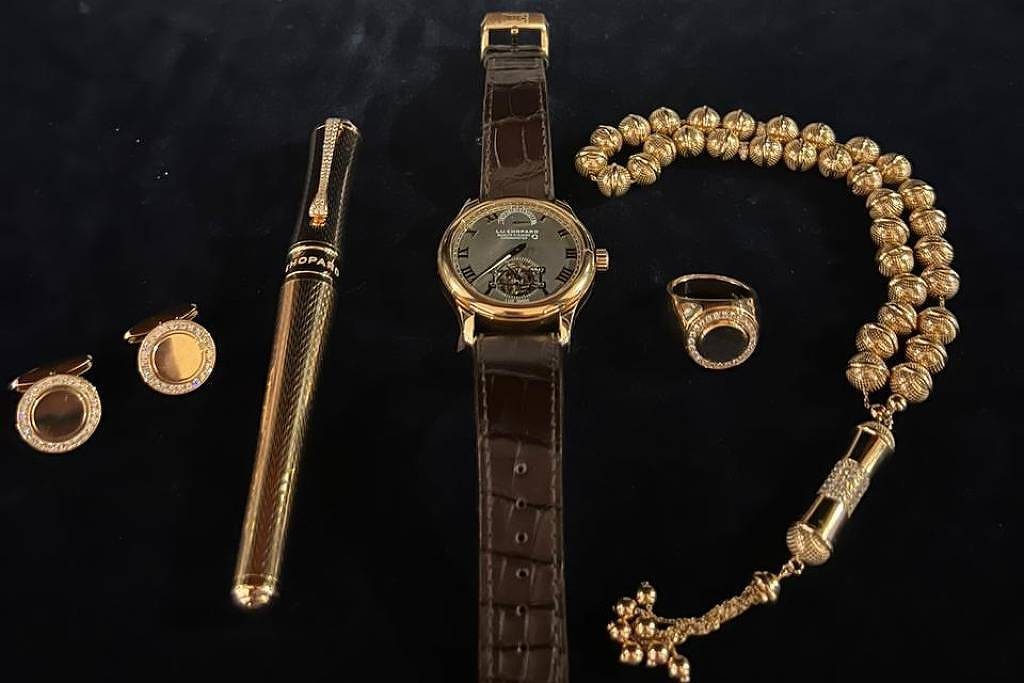 Um conjunto composto por seis itens – um relógio, uma caneta, um anel, um par de abotoaduras e um rosário, todos da marca suíça Chopard – entrou no Brasil em 2021 sem ser declarado nem detectado pelas autoridades brasileiras.