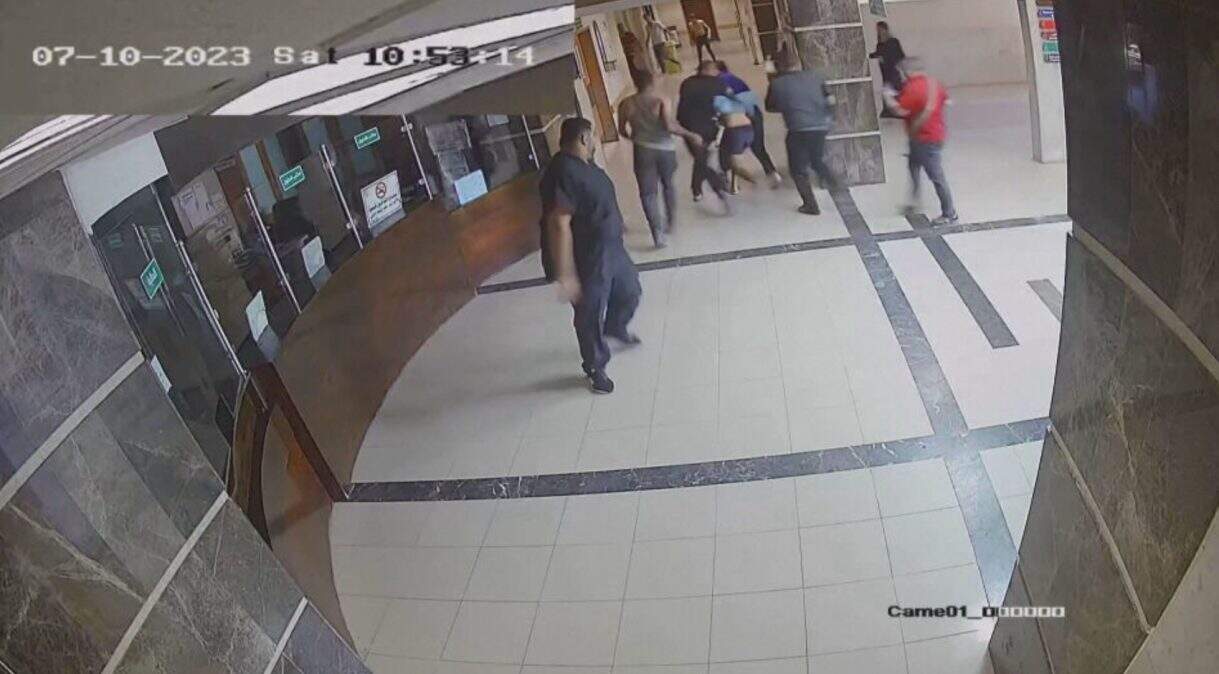 Um dos vídeos mostra um suposto refém sendo levado para o hospital pela entrada principal, disse Hagari. O refém segue à força pelo edifício, segundo a IDF. Hagari, em uma coletiva de imprensa no domingo, disse que o segundo vídeo mostra um outro refém – que tem uma mão enfaixada e está claramente sangrando – sendo empurrado em uma maca pelo corredor e em uma sala.