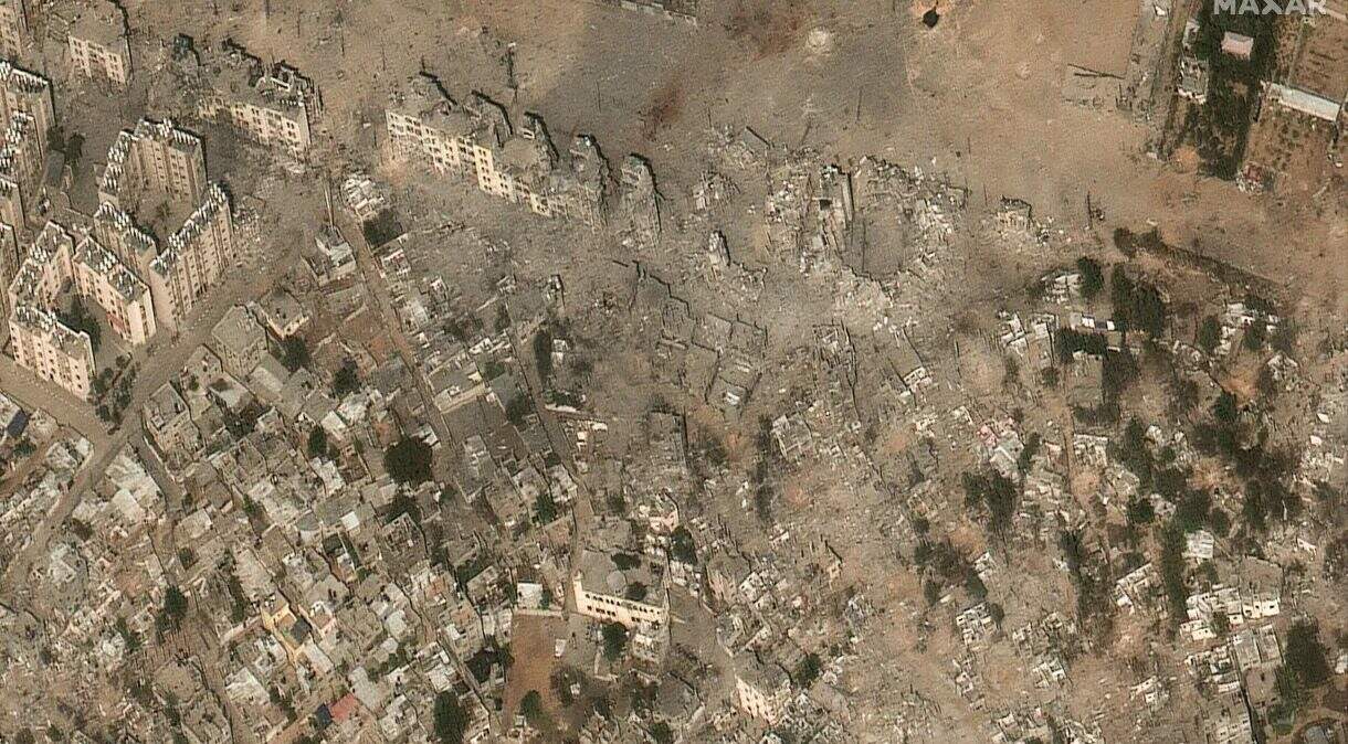 Um vídeo publicado pelas Forças de Defesa de Israel mostra tanques e veículos blindados, incluindo uma escavadeira, movendo-se em uma estrada no norte de Gaza. Os tanques disparam e alguma destruição pode ser vista nas proximidades.