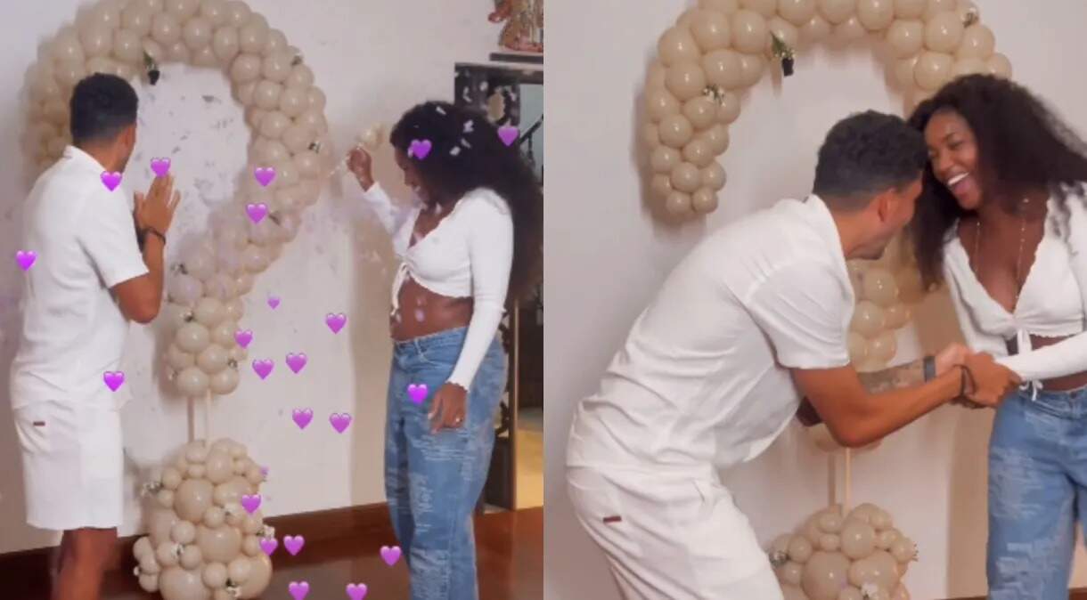 “Bem-vinda, Nala”, escreveu Iza ao publicar o vídeo do “chá revelação”. De forma simples, ela e o namorado furaram um balão localizado no centro de um ponto de interrogação branco, também formado por pequenos balões.