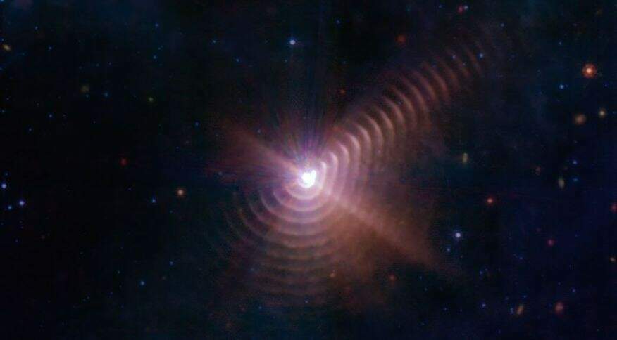 A Nasa divulgou nesta quarta-feira (12) uma imagem de ao menos 17 anéis de poeira criados a partir de um par de estrelas raras. O fenômeno foi captado pelo telescópio espacial James Webb. De longe, se assemelham ao formato de uma digital humana.