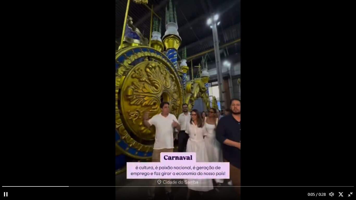 “Hoje, junto com o secretário-executivo do Ministério da Cultura, @marciotsantos, visitei os barracões da Portela e da Beija-Flor na Cidade do Samba. Só no local são mais de 10 mil pessoas que trabalham diariamente na produção das fantasias e alegorias de diversas escolas que brilham na Sapucaí. São pessoas que alimentam suas famílias o ano inteiro e tem suas vidas transformadas por meio da economia criativa e do amor ao carnaval, essa manifestação cultural tão amada em nosso País”, escreveu Janja no Instagram.