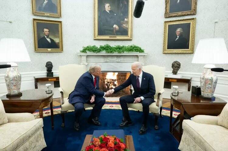 “Bem-vindo. Bem-vindo de volta”, disse o atual presidente. Trump, por sua vez, destacou que a política “é difícil e, em muitos casos, não é um mundo muito bom, mas hoje é um mundo bom, e eu aprecio muito isso”. Em seguida, concordou com o apelo de Biden por uma transição “tão suave quanto possível”.