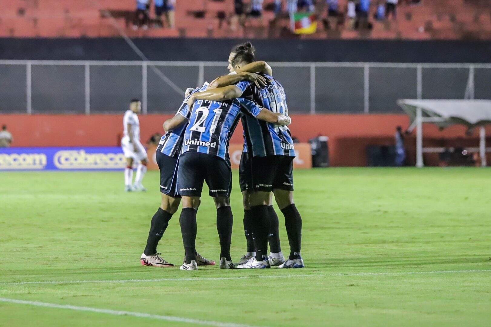 Em partida válida pela 37ª rodada do Campeonato Brasileiro, o Grêmio empatou por 1 a 1 em Salvador (BA) com o Vitória na noite desta quarta-feira (4). O resultado posicionou o Tricolor gaúcho em 12º lugar na tabela (45 pontos). A equipe tem pela frente o Corinthians na Arena, neste domingo (8), pela última rodada da competição. O placar do jogo no estádio Barradão foi aberto por João Pedro aos 37 minutos de bola rolando. Coube ao atacante Alerrandro, aos 18 da etapa final, igualar o marcador.