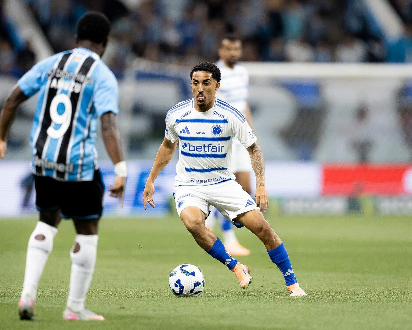 A pressão do Cruzeiro seguiu assustando o Grêmio. Matheus Pereira achou Kaiki pela esquerda, o lateral ajeitou de primeira para Kaio Jorge, livre dentro da área, cabecear nas mãos de Volpi.