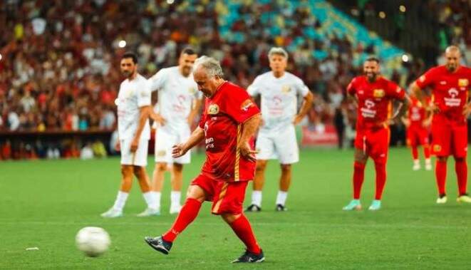 O estádio do Maracanã recebeu nesse sábado (28) a 20ª edição do histórico Jogo das Estrelas, organizado por Zico. Dono do evento que contou com mais de 40 mil pessoas, o ídolo do Flamengo marcou apenas uma vez na partida que terminou com vitória da sua equipe por 7 a 6. O evento homenageou Adílio, ídolo e campeão do mundo pelo Rubro-Negro.