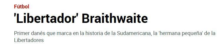 Com o gol decisivo, o atacante dinamarquês foi chamado de Libertador” pelo veículo espanhol. Ao longo do texto, contudo, o jornal se refere a competição como Sul-Americana, além de ser chamada de “irmãzinha” da Libertadores.