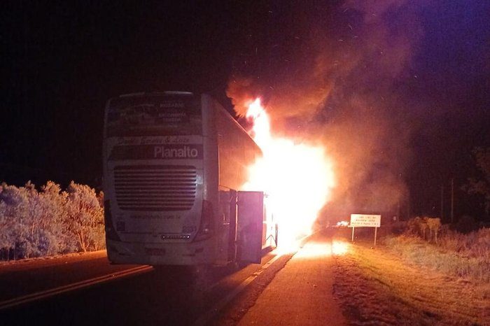 Um ônibus colidiu contra uma moto e pegou fogo na RS-287, em Candelária, no Vale do Rio Pardo, na noite deste sábado (24). Conforme a concessionária que administra a estrada, o fato ocorreu no km 141 da rodovia. O condutor da moto, um rapaz de 18 anos, morreu.