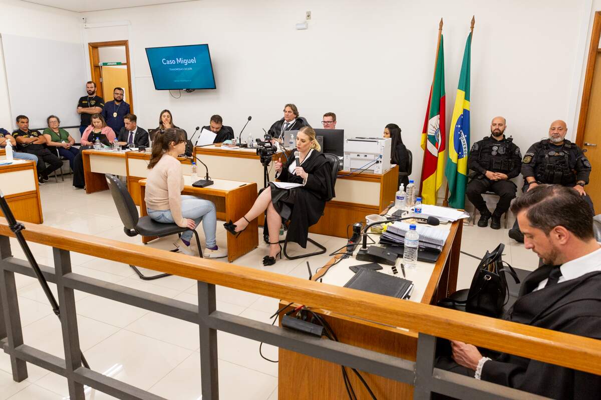 O júri das mulheres que respondem pela morte do menino Miguel dos Santos Rodrigues, ocorrida em Imbé, no Litoral Norte gaúcho, foi retomado na manhã desta sexta-feira (5) em Tramandaí. O julgamento, presidido pelo juiz Gilberto Pinto Fontoura, iniciou na quinta-feira (4).