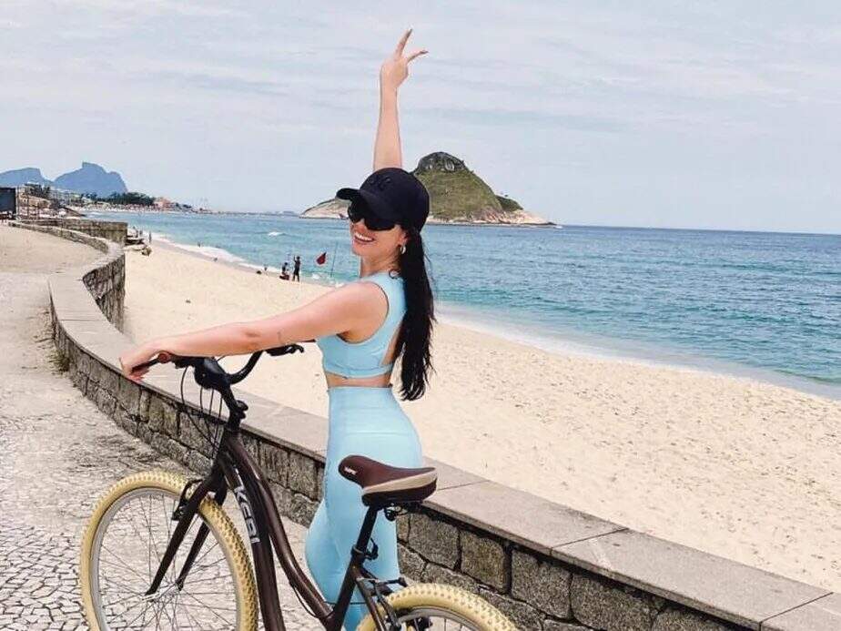 Juliette, de 32 anos, aproveitou o feriado desta terça-feira (15) ao ar livre. A campeã do BBB21 fez um passeio de bicicleta por uma praia do Rio de Janeiro usando um conjunto de calça e top azul-claro, boné e óculos escuros.