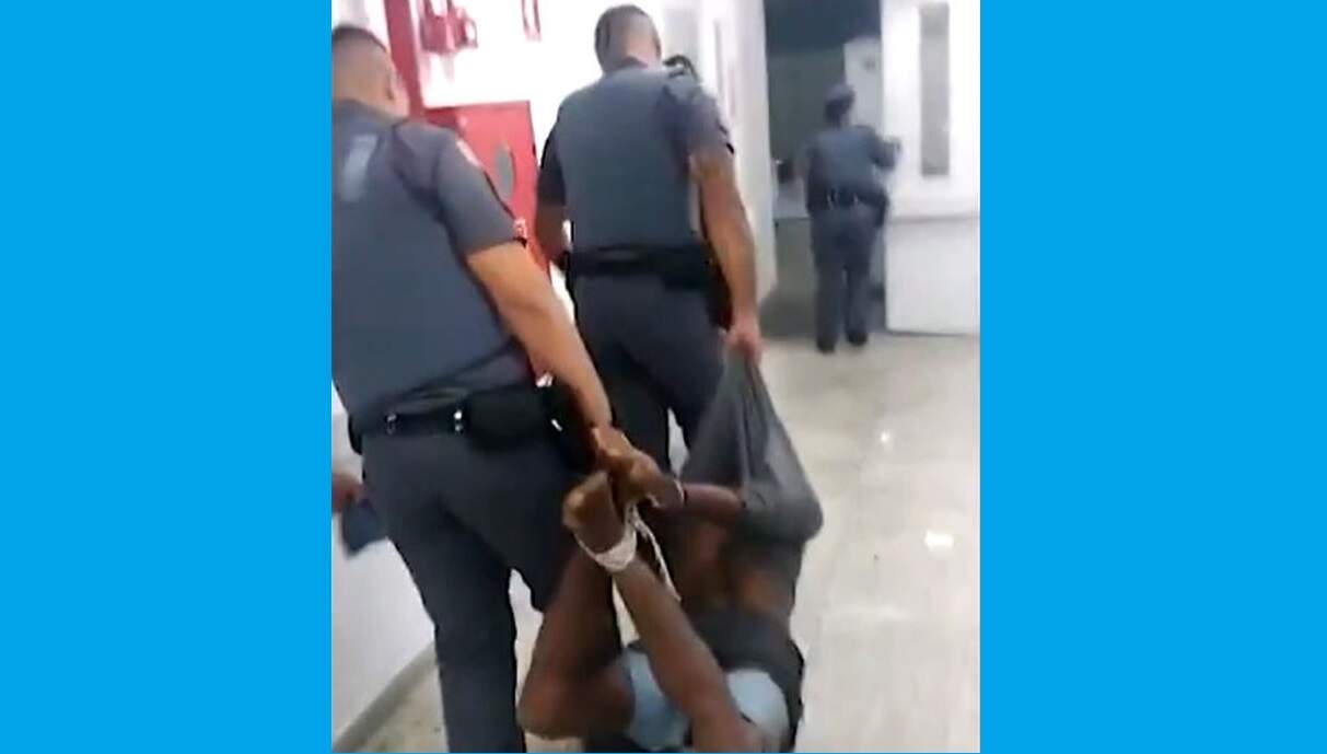 No vídeo feito pela testemunha, o suspeito é arrastado pelo chão por um dos agentes para dentro de uma sala. Depois, Robson é carregado por dois policiais militares, que o seguram pela corda e pela camiseta. Ainda amarrado, ele é colocado no porta-malas de uma viatura.