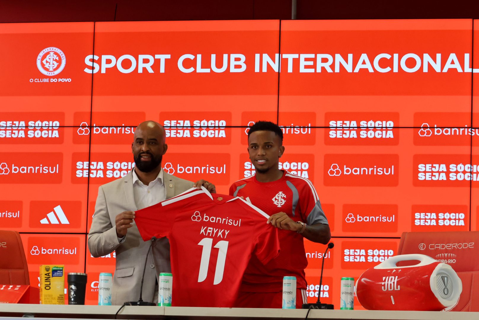 O diretor executivo de Futebol do Colorado, Fabinho Soldado, apresentou oficialmente, nesta sexta-feira (13), o novo atacante Kayky. O jogador, que já estreou com a camisa colorada na derrota para o Palmeiras pela 3ª rodada do Brasileirão, na última quinta-feira, no Beira-Rio, concedeu entrevista coletiva na sala de imprensa do estádio. Ele falou sobre as razões que o levaram a aceitar a proposta do Clube do Povo e suas expectativas para a temporada 2026.