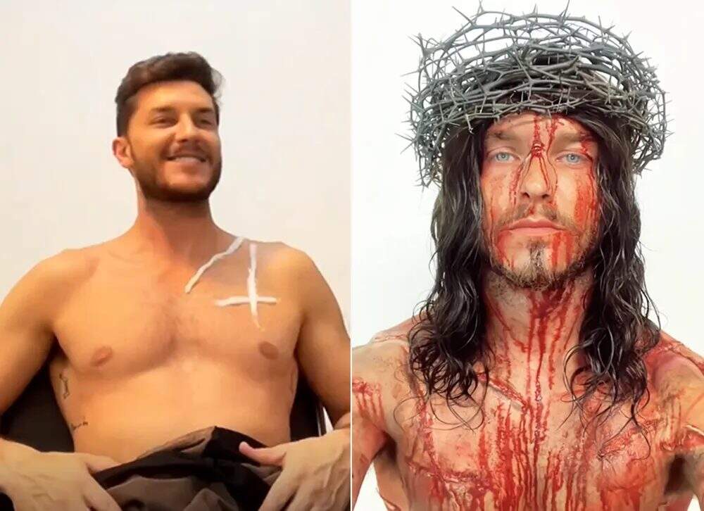 Klebber Toledo compartilhou com os fãs no Instagram o detalhado processo de caracterização para sua transformação em Jesus na Paixão de Cristo. O ator de 36 anos postou um vídeo mostrando a equipe de maquiagem fazendo em seu corpo e rosto as marcas de flagelo, cortes e machucados, além de colocando peruca e a coroa de espinhos em sua cabeça.