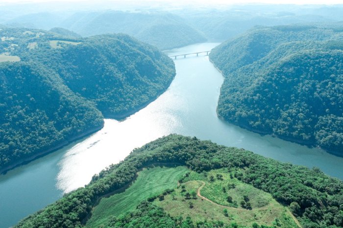 O grande rio Uruguai, que nasce na junção dos rios Canoas e Rio Pelotas, na divisa do RS com SC, não desce a serra para o mar, mas segue por um planalto em direção firme para o Oeste até encontrar o rio Peperi-Guaçu, na fronteira com a Argentina e SC. De repente, ele dobra para a esquerda e desce separando Brasil e Argentina até Barra do Quaraí, onde forma uma tríplice fronteira com Brasil, Uruguai e Argentina. Daí ele segue separando Uruguai e Argentina e desemboca, junto com o majestoso rio Paraná, no “Mar del Plata”, num delta que é uma simbiose de águas e se mistura com o oceano Atlântico, simultaneamente, próximo a Colônia do Sacramento e Buenos Aires.