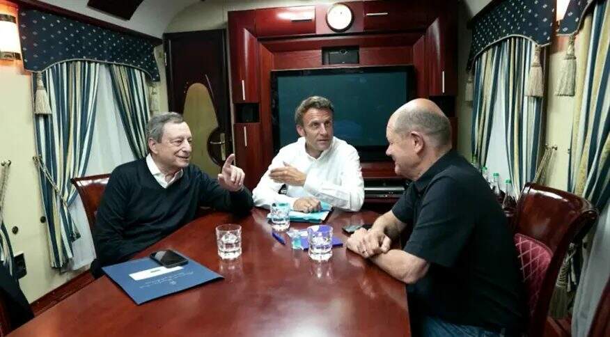 O presidente da França, Emmanuel Macron, o chanceler da Alemanha, Olaf Scholz, e o primeiro-ministro da Itália, Mario Draghi, visitaram nesta quinta-feira (16) a capital ucraniana, Kiev.
