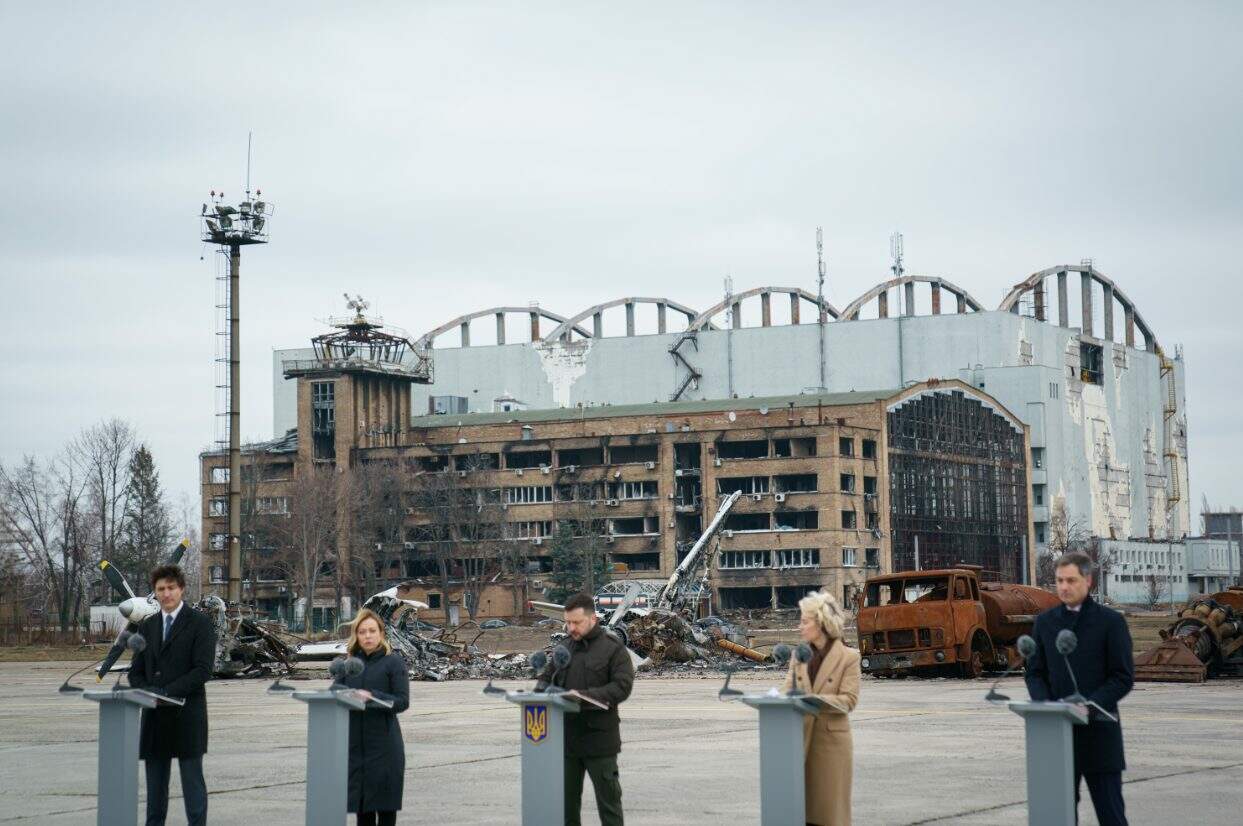 Os primeiros-ministros de Itália, Canadá e Bélgica, além da presidente da Comissão Europeia desembarcaram em Kiev, capital da Ucrânia, neste sábado (24), em um gesto de solidariedade ao governo ucraniano no dia em que a guerra contra a Rússia completa dois anos.