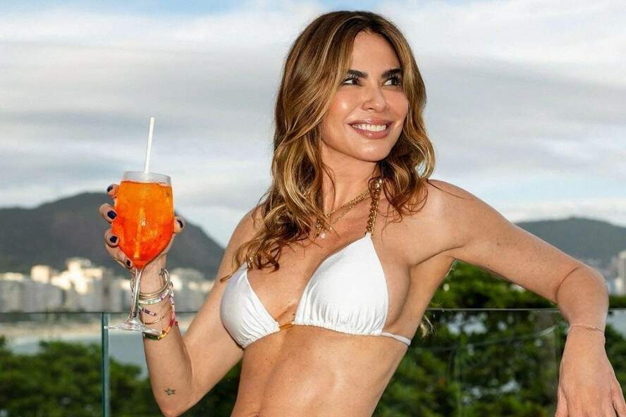 Nesta terça-feira (12), Luciana Gimenez recebeu elogios após posar em foto tomando drink, apenas de biquíni branco e joias douradas. Na foto, a apresentadora aparece em uma varanda com vista para a praia no Rio de Janeiro.