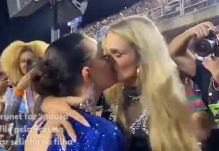Ex-rainha de bateria da Portela, a empresária Luiza Brunet fez uma “pausa” no desfile da azul e branca de Madureira para dar um selinho em sua filha, Yasmin Brunet, que acompanhava a participação da mãe de um dos camarotes da Sapucaí.