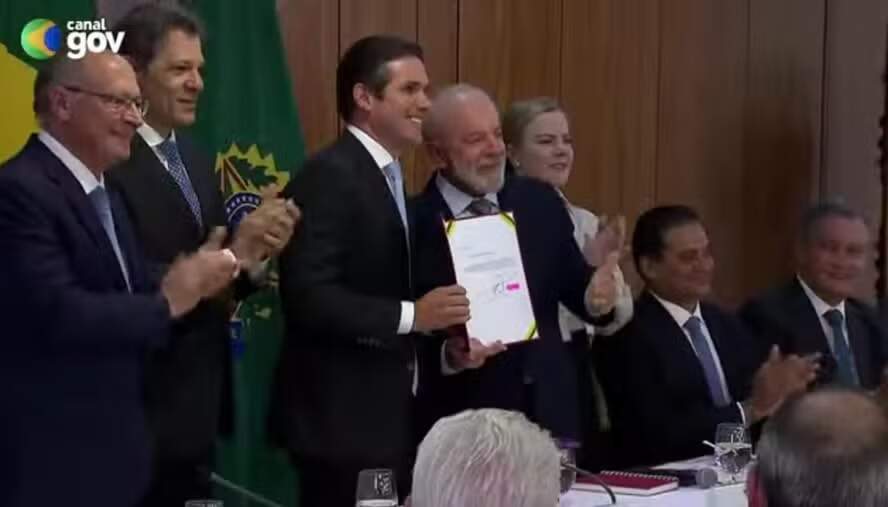 Ministros e líderes do governo também participaram do evento. Esperado no ato, o presidente do Senado, Davi Alcolumbre (União-AP), estava em uma solenidade em homenagem aos 40 anos da redemocratização e não compareceu. A expectativa do governo é ter as novas regras em vigor somente em 2026.