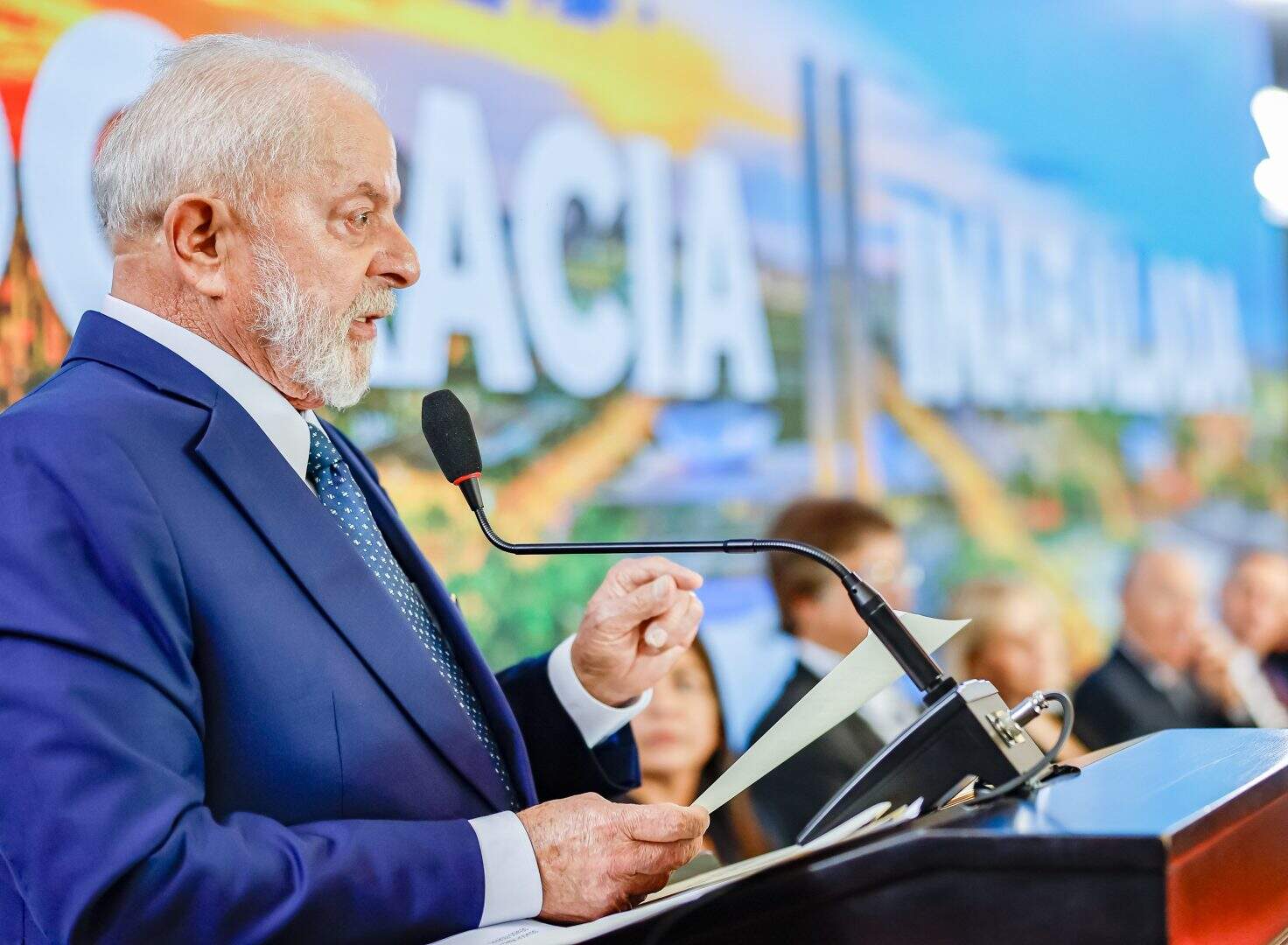 O evento Democracia Inabalada teve, além de Lula, a presença dos presidentes do Congresso Nacional, Rodrigo Pacheco (PSD-MG), e do Supremo Tribunal Federal (STF), Luís Roberto Barroso, além de parlamentares, ministros, ex-ministros e representantes da sociedade civil. A governadora do Rio Grande do Norte, Fátima Bezerra, foi a primeira a discursar, falando em nome dos governadores do País.