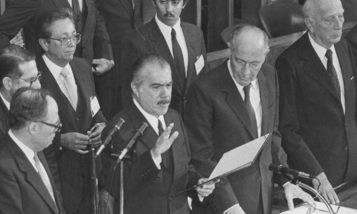 Após 21 anos de ditadura militar e em uma conjuntura de protestos contra o regime, em 15 de março de 1985, José Sarney tomou posse como vice-presidente civil para assumir interinamente a Presidência da República — marcando oficialmente o processo de redemocratização. (Com informações da CNN Brasil)