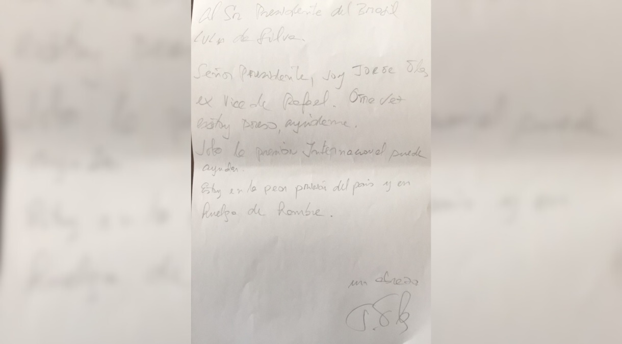 O presidente Luiz Inácio Lula da Silva recebeu uma carta escrita à mão com um pedido de ajuda de Jorge Glas, ex-vice-presidente do Equador que está em uma penitenciária de segurança máxima em Guayaquil.