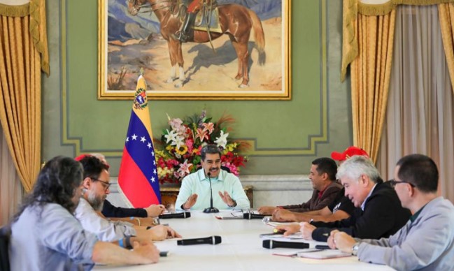 O presidente da Venezuela, Nicolás Maduro, recebeu nessa segunda-feira (23) o líder do Movimento dos Trabalhadores Rurais sem Terra (MST), João Pedro Stedile, no Palácio de Miraflores, sede do governo venezuelano. Em publicação feita nas redes, o líder chavista chama o MST de “poderoso movimento do campo” e associa as ações do grupo ao “socialismo do século 21”.