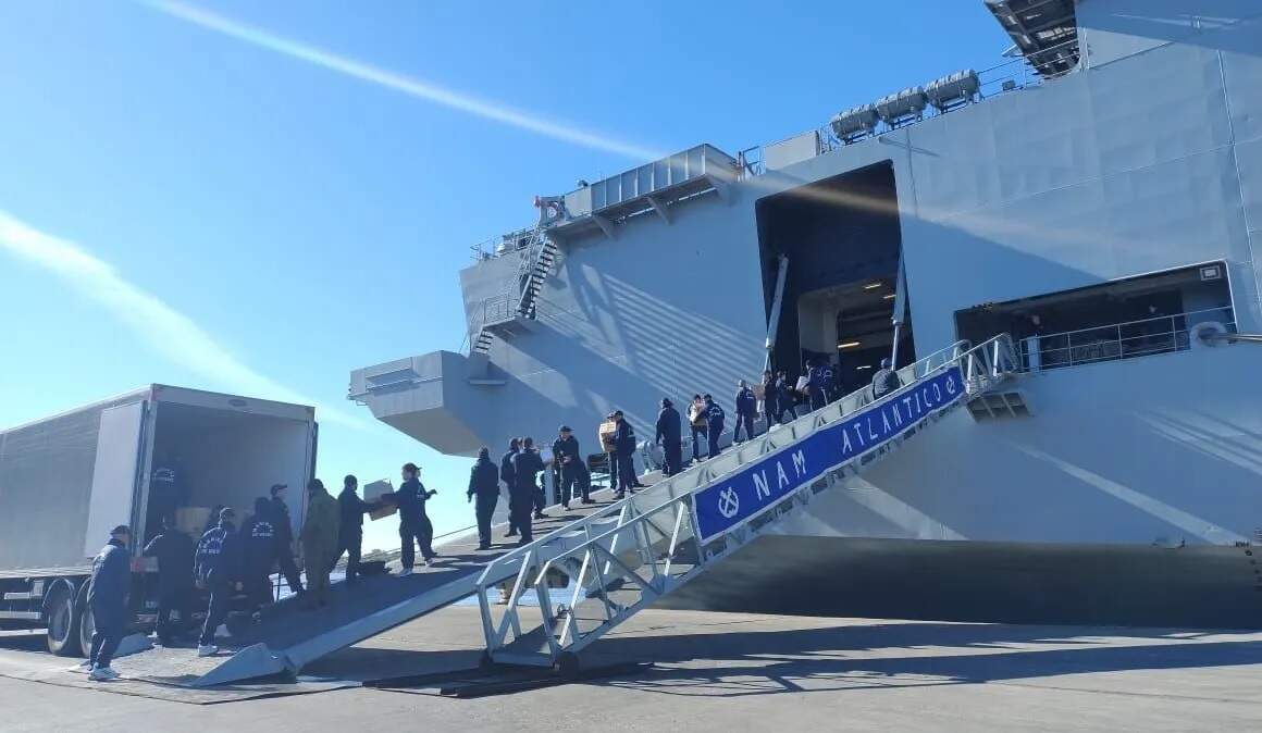 O Navio Aeródromo Multipropósito Atlântico (NAM Atlântico) atracou novamente na cidade de Rio Grande (RS), nesta quinta-feira (27), com donativos que serão destinados às vítimas das enchentes que atingiram o Rio Grande do Sul. Ao todo, cerca de 115 toneladas foram levadas pela embarcação que é considerada a maior da América Latina.
