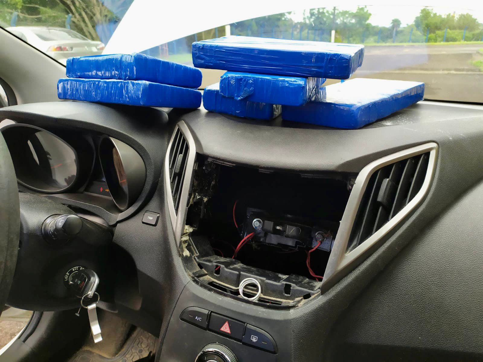 A droga estava escondida no painel do veículo. O HB20, com placas de Itapema (SC), foi abordado quando entrava no Rio Grande do Sul. Durante uma revista, os policiais encontraram a cocaína distribuída em pacotes.