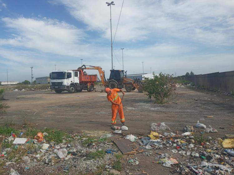 O DMLU (Departamento Municipal de Limpeza Urbana) realizou, no domingo (12), um mutirão de limpeza perto do Complexo Cultural do Porto Seco, na Zona Norte de Porto Alegre.