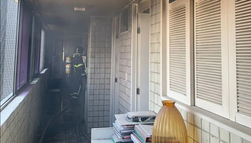 Um curto-circuito em um ar-condicionado teria causado o incêndio, segundo informou o síndico do edifício. Sete pessoas estavam no local quando as chamas tiveram início, por volta das 10h.