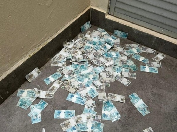 Dinheiro jogado pela janela foi recuperado pela Polícia Federal. (Foto: PF/Divulgação)