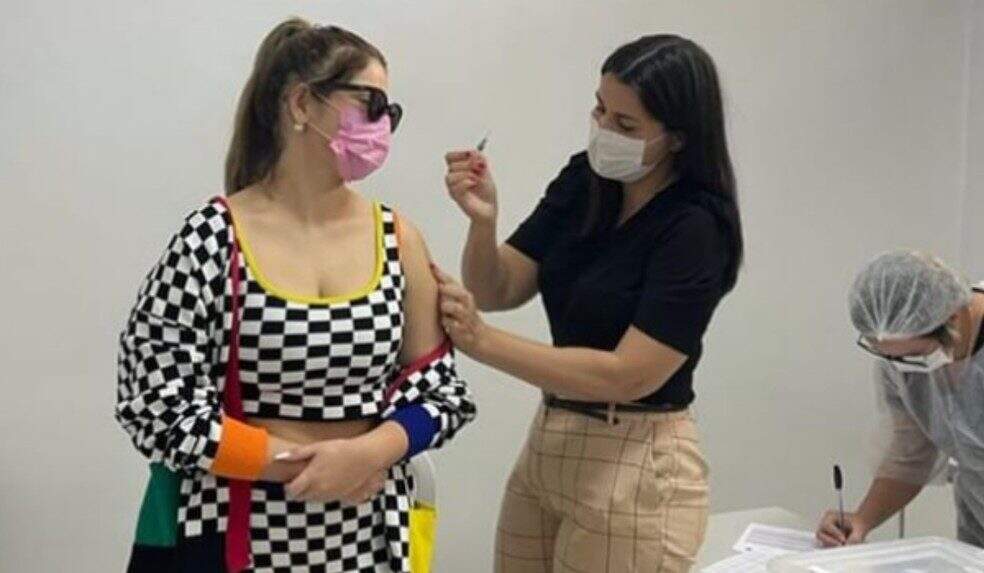Marília estava vestida com a mesma roupa que embarcou, durante a imunização. A profissional que aplicou a vacina na cantora disse ainda que ela estava muito animada com a retomada dos shows.
