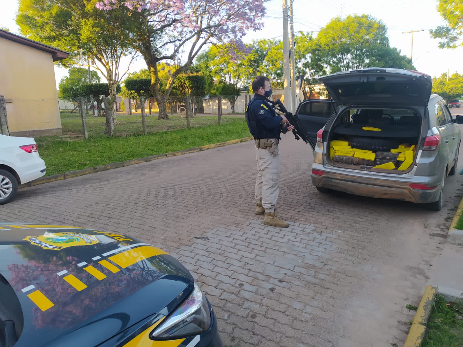 Após alguns quilômetros de perseguição e cerco na região, os PRFs conseguiram interceptar o veículo já na BR-471 em Encruzilhada do Sul. O carro estava carregado com maconha, totalizando cerca de meia tonelada.
